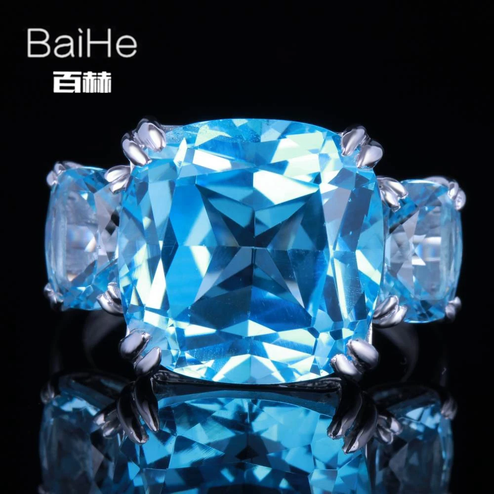 BAIHE Стерлинговое Серебро 925 13.3ct сертифицированная безупречная огранка подлинный голубой топаз обручение женские модные ювелирные изделия ...