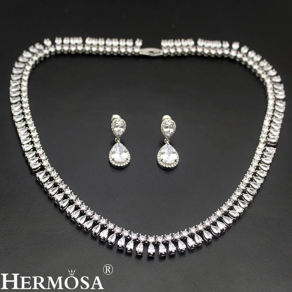 Nedorogo Последний Дизайн Романтические свадебные украшения набор стерлингового серебра 925 свадебное ожерелье серьги Идеальный Блестящий женский ... Nizkaya tsena
