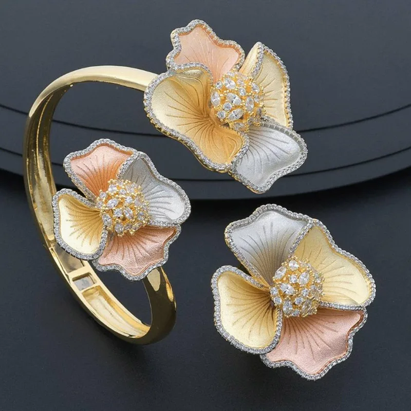 Luchshaya tsena - Zlxgirl сложное ремесло специальный дизайн Ювелирные наборы браслет кольцо 3 тона кубическая форма из латуни с цирконами знаменитостей Банкет...