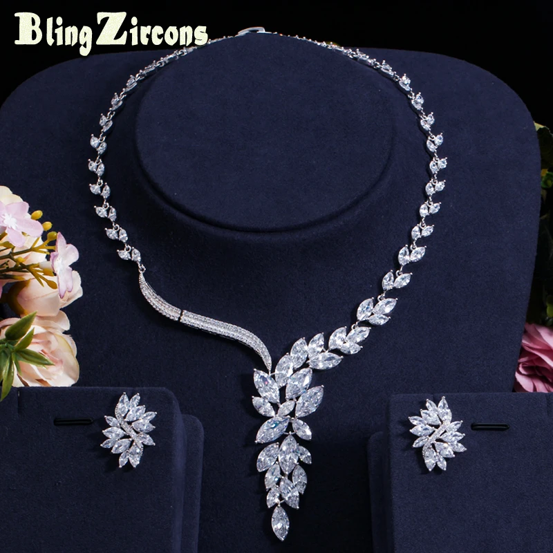 Spetsial'nyye predlozheniya BeaQueen доступный женские бижутерия листьев форма кубического циркония свадебные серьги-гвоздики, Цепочки и ожерелья комплекты для невест JS025 Nizhe (ukazhite diapazon tsen)