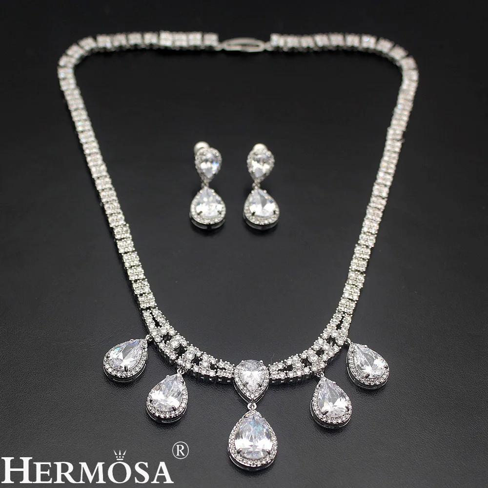 Dostupnoye - Романтический Блестящий Свадебный комплект ювелирных изделий из стерлингового серебра 925 пробы женское ожерелье и серьги Нежный дизайнер ... Luchshiye predlozheniya