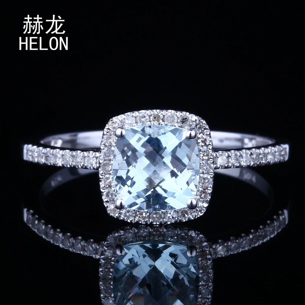 Tsena Sravneniye - Твердая 10 к белая Золотая Подушка 6x6 мм 100% Натуральный аквамарин Halo с натуральными бриллиантами обручальное свадебное женское Ювелирное ко... Luchshaya tsena