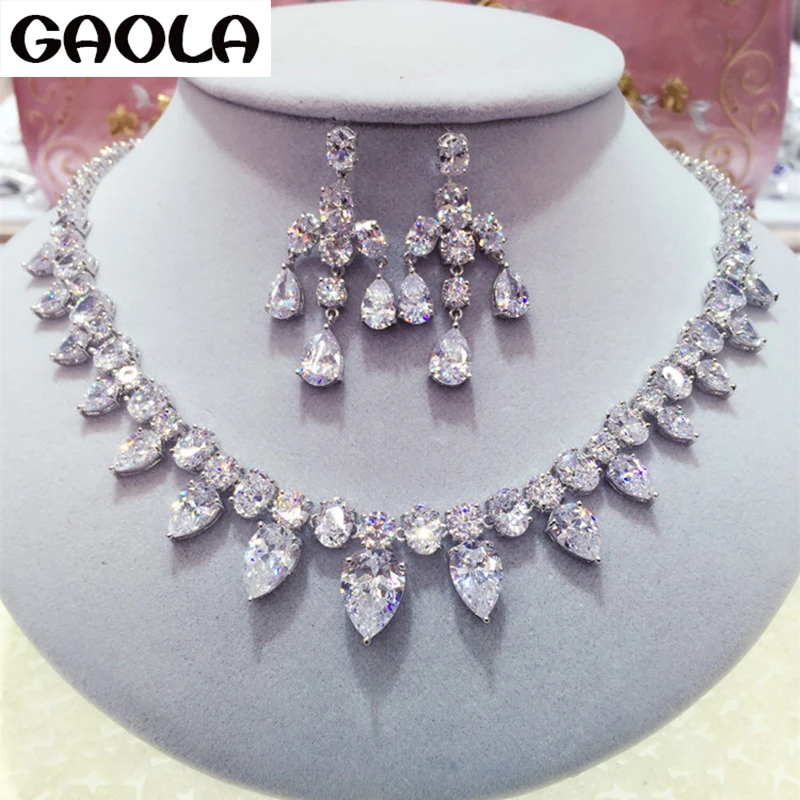 Gaola 2016 Новый дизайн сезона высокое качество преувеличивать CZ подвеска Цепочки и ожерелья красивые Серьги роскошный комплект ювелирных изде...