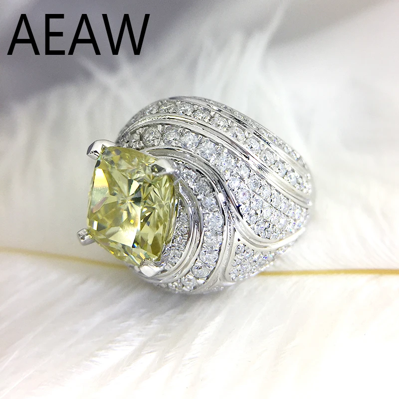 4 Carat ct золотистые вставки вырезать Обручение и свадебных торжеств для синтетический бриллиант двойное кольцо Halo Кольцо из натуральной 10K бе...