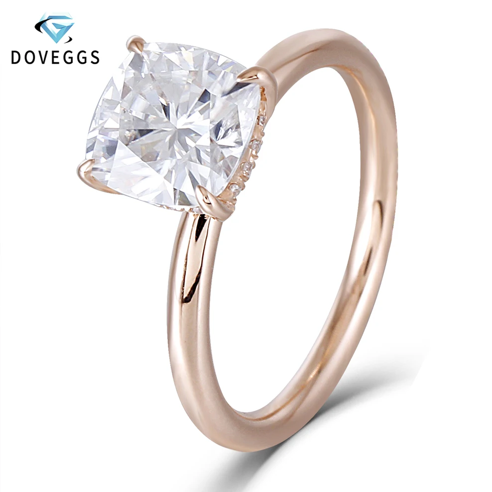 Na prodazhu - DovEggs 14 к розовое золото 1.5ct карат 7 мм F цвет подушка огранка Муассанит алмаз обручальные кольца для женщин Свадьба с акцентами Luchshaya tsena