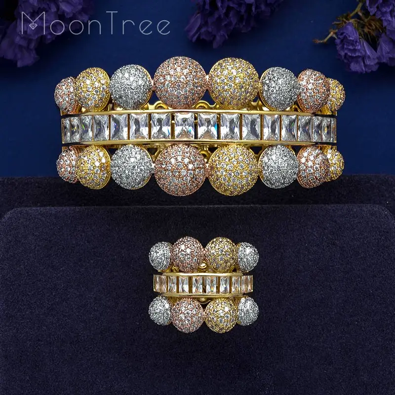 MoonTree роскошный шар соединен полный Мирко проложили микрол циркония геометрический дизайн для женщин браслет кольцо комплект платье ювелир...
