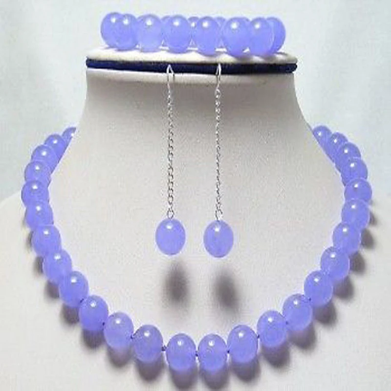 Новый Для женщин Дизайн 8 мм Чистый фиолетовый Серьги браслет Цепочки и ожерелья подвеска комплект ювелирных изделий 65g8rg