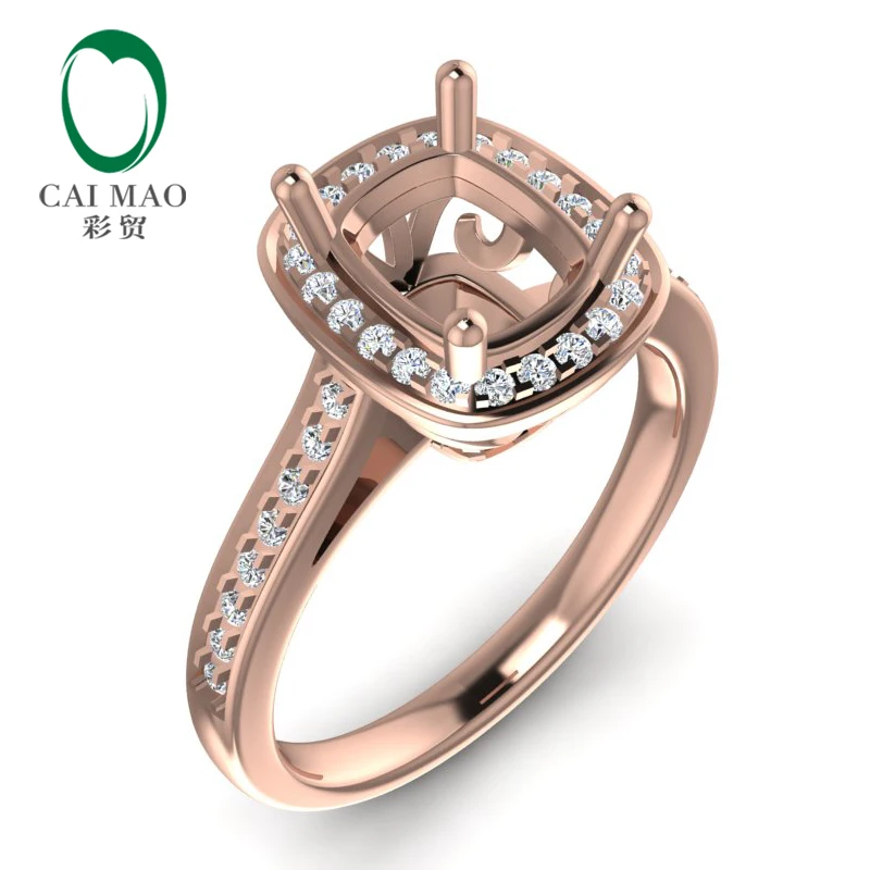 Deshevyy v Internete - 5,5x7 мм подушка натуральный полный разрез АЛМАЗ 14k розовое золото 0.27ct кольцо зубец Halo Nedorogo
