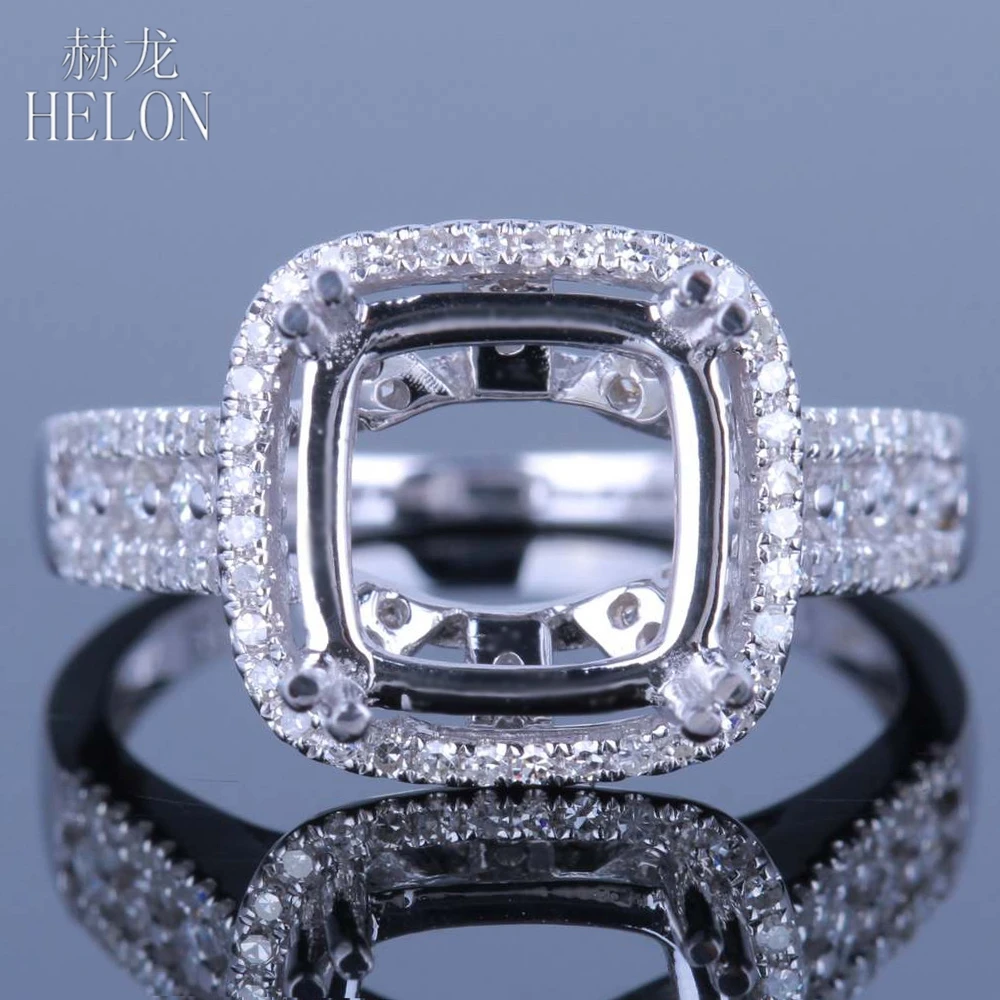 Samyye deshevyye v Internete - HELON Dou Prongs Solid 14 K белое золото 9X9 мм Подушка полукрепление помолвка натуральный бриллиант свадебное Шикарное Кольцо ювелирные изделия Spetsial'naya tsena