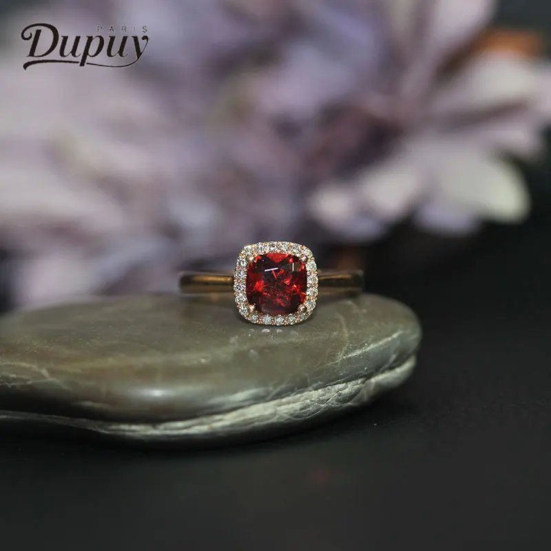 Luchshaya tsena Дюпюи Для женщин обручальные подушки сократить площади гранат кольца Классический зубец Установка Обручение Свадебные Кольца с алмазами ... Sravneniye tsen