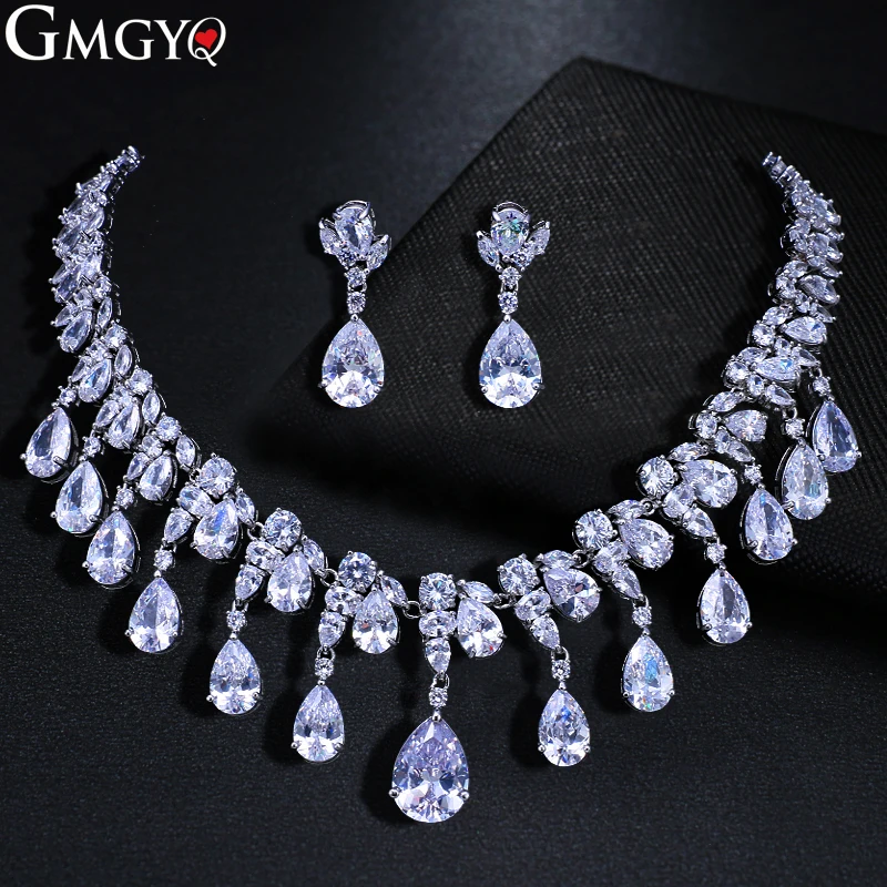 GMGYQ блестящий и роскошный дизайн ослепительный капли воды циркония драгоценности подходит для женщин подружек невесты свадебные платья