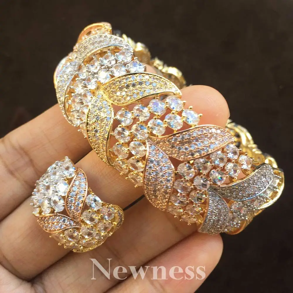 Nedorogo - Новый бренд класса люкс цветок дизайн кубического циркония три цвета браслеты браслет кольцо набор для женщин ювелирные изделия подарки