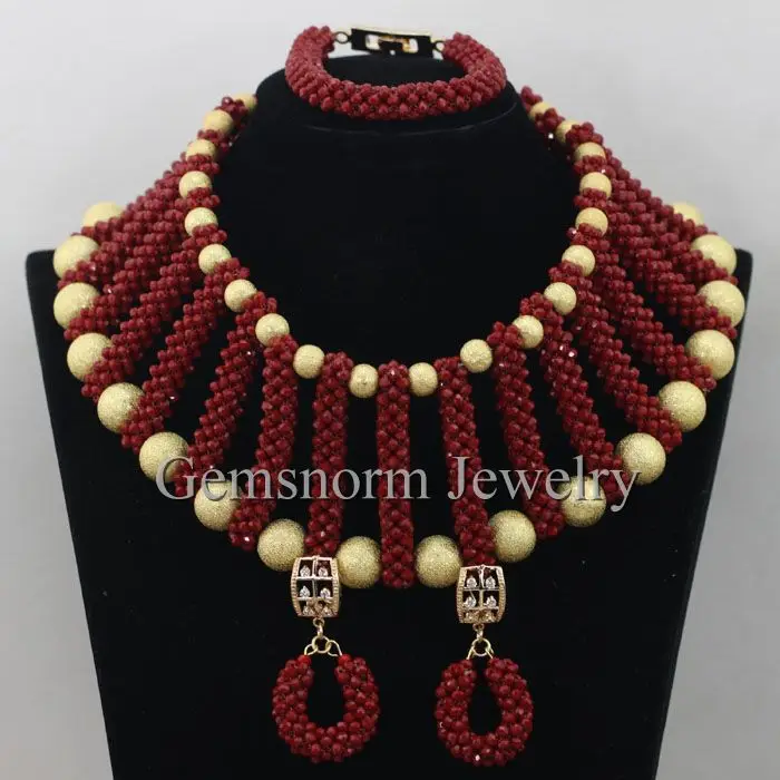 Красные африканские хрустальные бусины комплект ювелирных изделий последний дизайн нигерийские бусы комплект ювелирных изделий новое оже...
