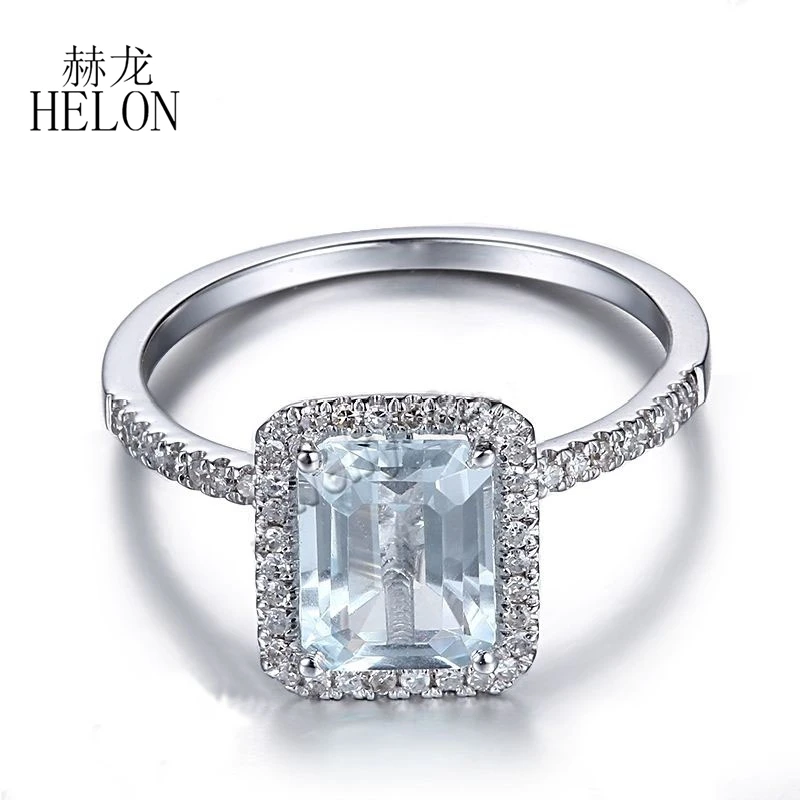 Luchshaya tsena - HELON одноцветное Белое золото 14 карат 8x6 мм Подушка 1.5CT Натуральный аквамарин и натурального алмаза Обручение Свадебные Для женщин ювелирные ...