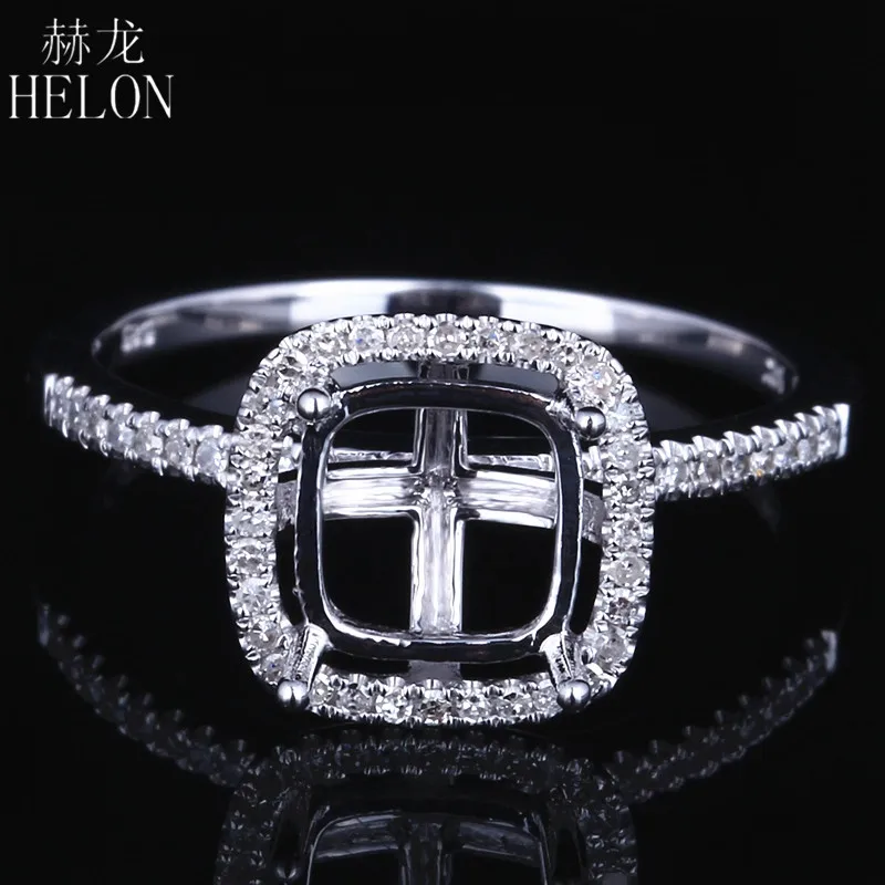 Na prodazhu - HELON 7x7 мм Подушка из стерлингового серебра 925 пробы для свадебной вечеринки красивые женские кольца с натуральным бриллиантом с полукреплен... Spetsial'naya tsena