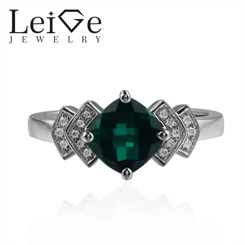 Luchshiye predlozheniya - Лейдж Jewelry лаборатория изумруд кольца Подушка с зеленый камень Обручение кольца для женщины 925 серебро может камень
