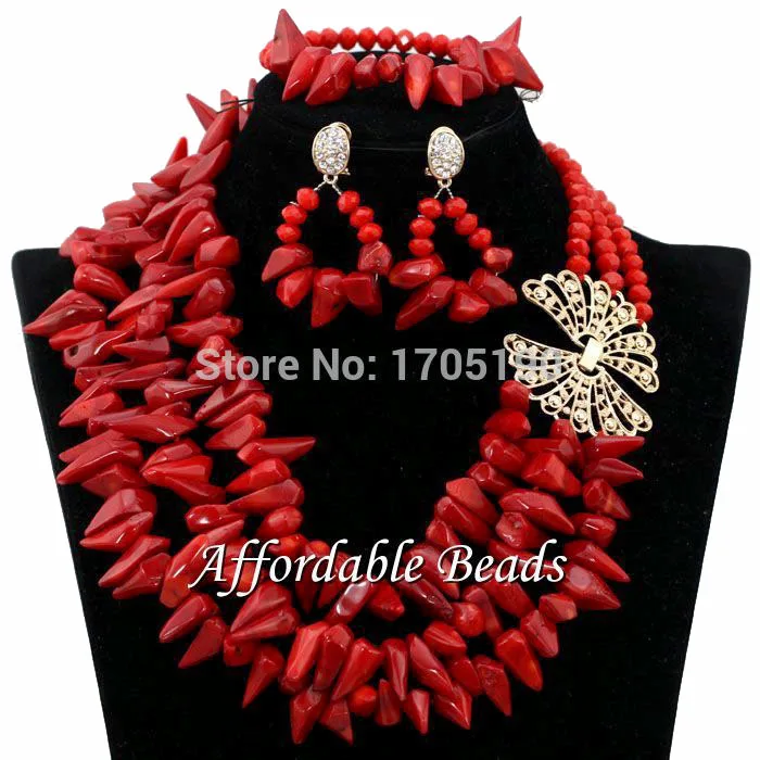 Spetsial'naya tsena - Красный коралл бусины комплект ювелирных изделий очаровательный набор нигерийских бусин уникальный дизайн оптовая продажа CN207