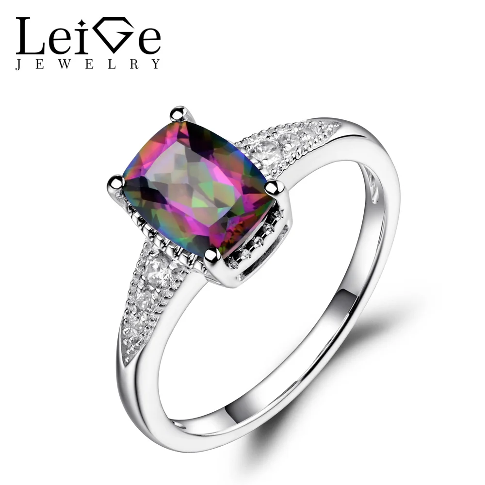 Nizkaya tsena - Украшения leige сплошной 925 пробы серебро, мистический топаз Обручение кольца Подушка Радуга мелкий драгоценный камень Ноября Камень кольцо Luchshaya tsena