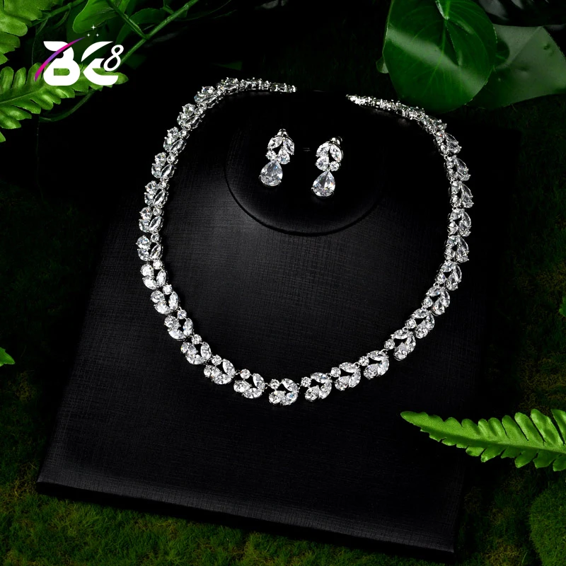 Be 8 Роскошные Свадебные украшения наборы изысканные в виде капли AAA кубического циркония Кристалл ювелирные изделия Блестящий Bijoux для женщи...