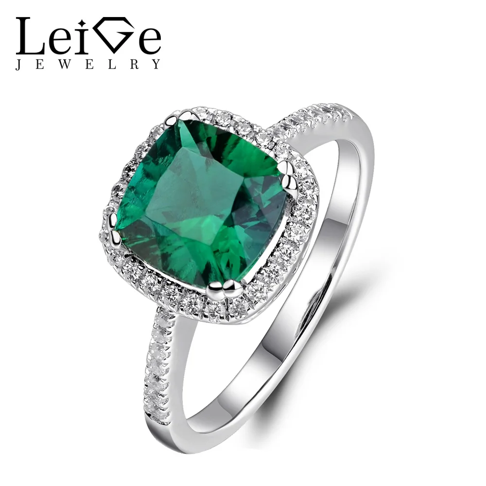 Лейдж ювелирные изделия Серебро 925 Изумрудное кольцо зеленый камень свадебные Обручение Halo Кольца для Для женщин Юбилей подарок Подушки с