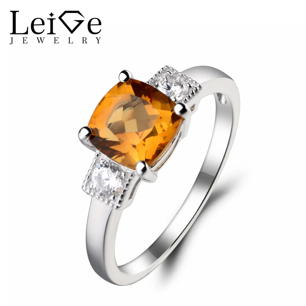 Украшения leige желтый драгоценный камень кольцо с натуральным топазом Обручение обручальное кольцо с квадратным камнем 925 пробы серебро Ноя...