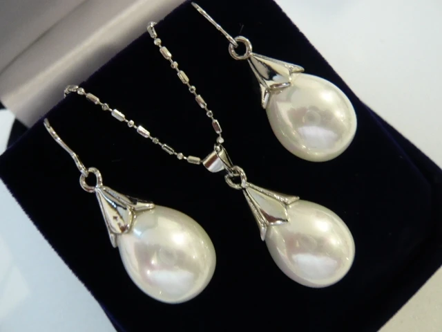 So skidkoy - Оптовая продажа 12*16 мм капли воды белый корпус жемчуг красивый дизайн серьги и кулон ожерелье комплект ювелирных изделий Luchshaya tsena