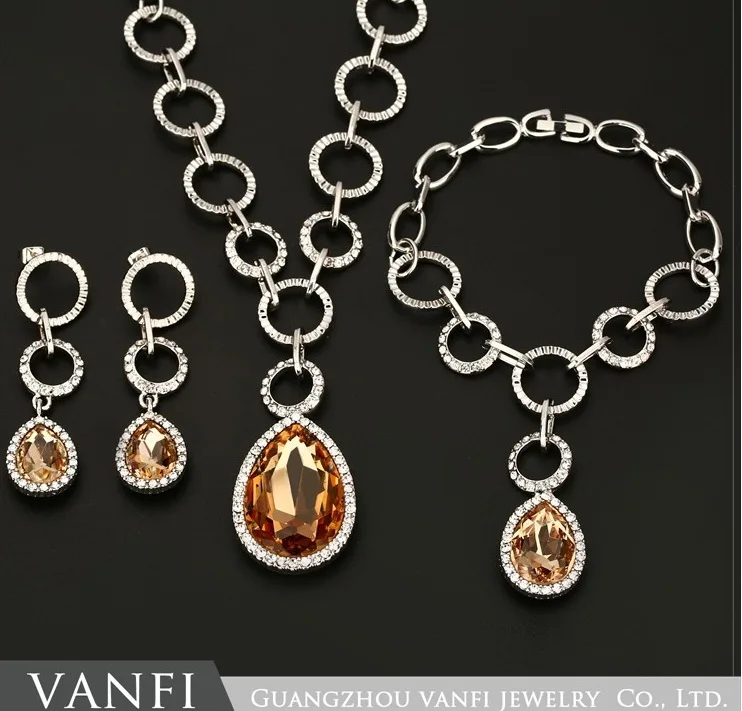 V Internete - Новый Дизайн золотисто-желтый камень роскошные Цепочки и ожерелья партии серьги/свадебные Наборы свадебных ювелирных изделий, высокое кач... Luchshaya tsena