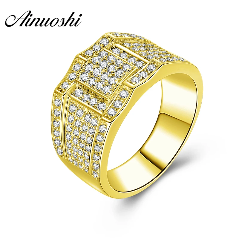 Sravneniye tsen - AINUOSHI 14K массивная, желтая, Золотая Мужская кольцевая блестящая CZ Arc дизайн кластера Свадебное обручальное кольцо золотые ювелирные изделия ... Luchshiye predlozheniya