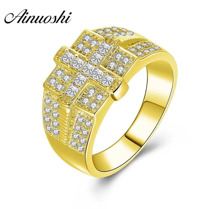 AINUOSHI 14K массивная, желтая, Золотая Мужская кольцевая блестящая CZ Крест кластер Свадебное обручальное кольцо золотые ювелирные изделия широ...